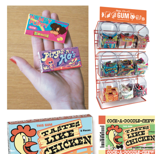 CHICKLET STYLE CHEWING GUM box designs and concepts • The HUMPY PUPPY GUM originated as a gag I mocked-up and included with a design idea for HAPPY PUPPY GUM. Blue Q, being Blue Q, ditched HAPPY PUPPY and put HUMPY PUPPY into production. They even expanded on the idea with a HUMPY PUPPY fridge magnet set.