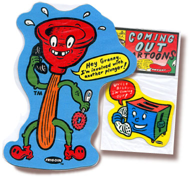 • COMING OUT CARTOONS® (set of 3): The Plunger, The Toaster & The Duck; “We’re Queer! We’re Cartoons! Get used to it!” Experts say 10% of humans are gay. We figure the same % exists in the cartoon community, if not more! The climate is finally right for cartoons to express their true sexuality openly and freely to their relatives and to the cartoon enjoying community at large. We at FRIGGIN MAGNETS® want to offer them a warm welcome and hope that our outing a few cartoons won’t affect their professional careers.