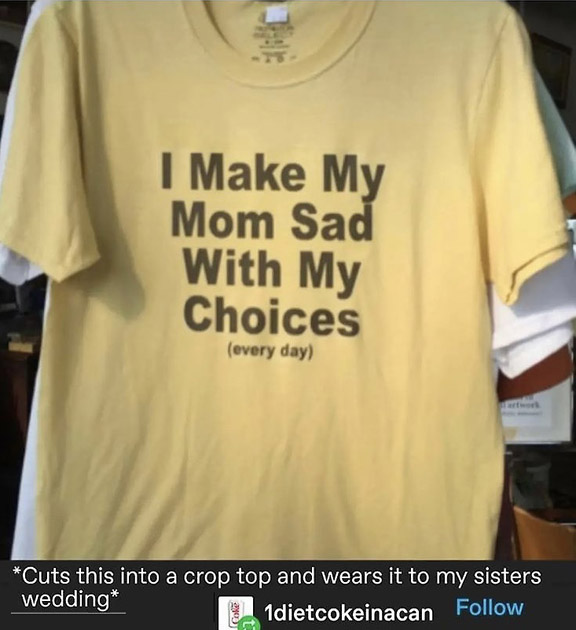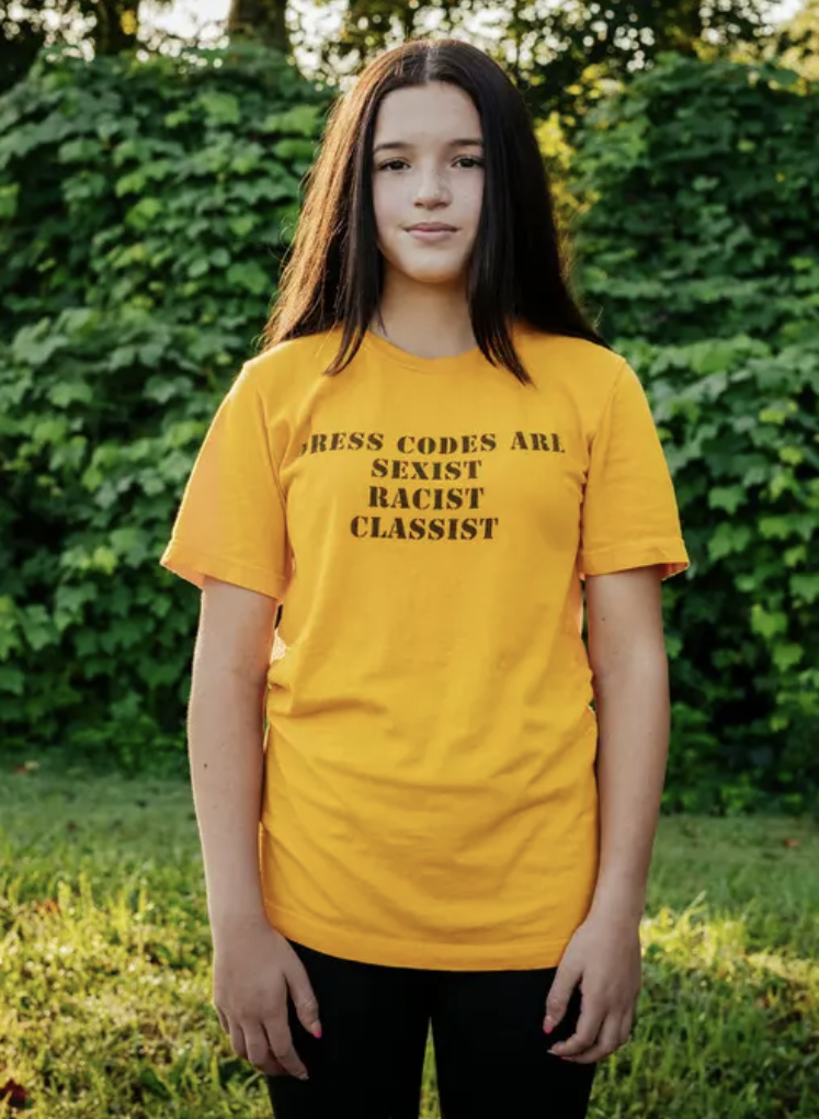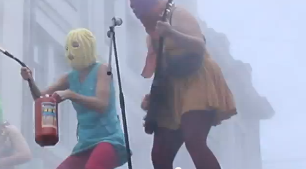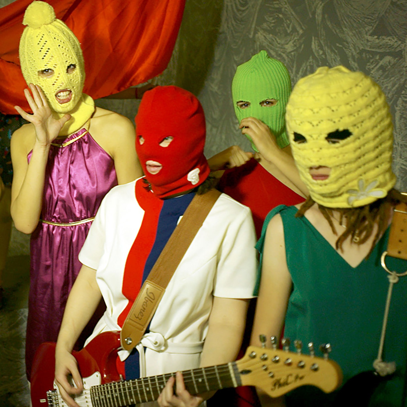• (ABOVE) A few shirts I didn’t design but love. ANYTHING YOU CAN DO • I MAKE MY MOM SAD designed by Amris Bamazruk • DRESS CODES ARE SEXIST is worn by its creator, Sophia Trevino. Maybe I’m just a sucker for a yellow tee shirt? (BELOW) The PUSSY RIOT 2019 TOUR tee shirt that Eve wore in the Garden of Eden, and a few pics of the band.