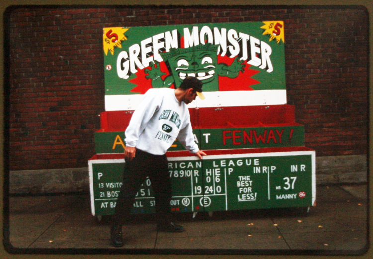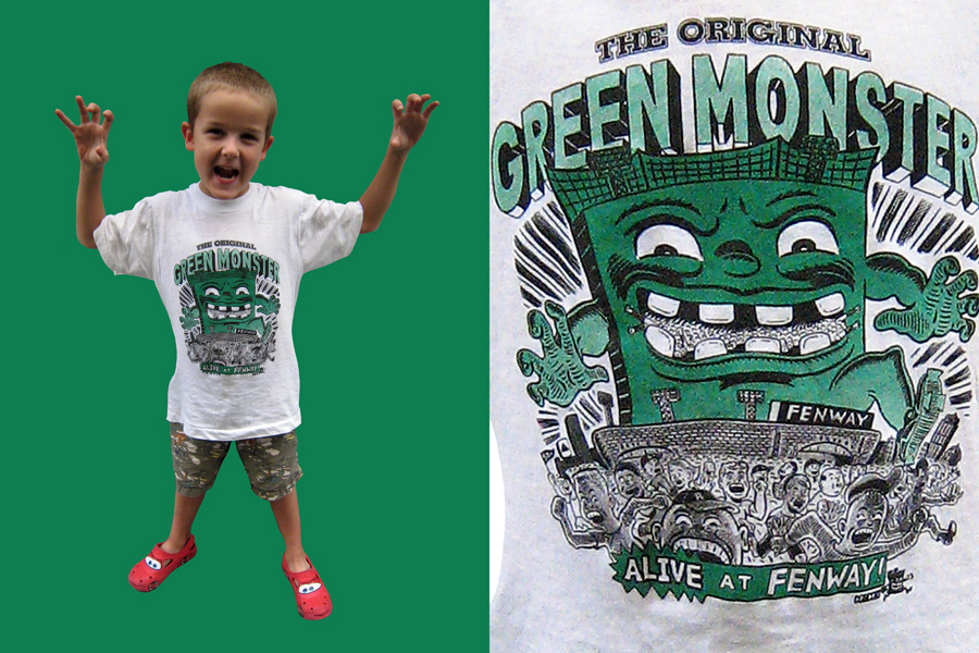 • Green Monster tees: In college my brothers and I started a business selling tee shirts outside Fenway Park in Boston. Initially we offered two shirt designs drawn by my brother Gus: the Bleacher Creature tee and the wildly popular Green Monster tee. Our first few batches I hand silkscreened in our basement right before we headed to the game. We didn’t always have time to heat cure the ink so some people did come back and ask for a refund after the design disappeared in their wash. Eventually, as our hawking skills improved, and I was able to quit my job at TGIF and we were able to hire a professional printer to keep up with the demand. Honing our designs in the subsequent years was good training as to what elements are essential for a successful tee. We worked the cart ourselves the first three seasons, until the biz became so successful that we were able to hire crews and only occasionally have to pick up a few shifts to sling shirts during extended home stands.