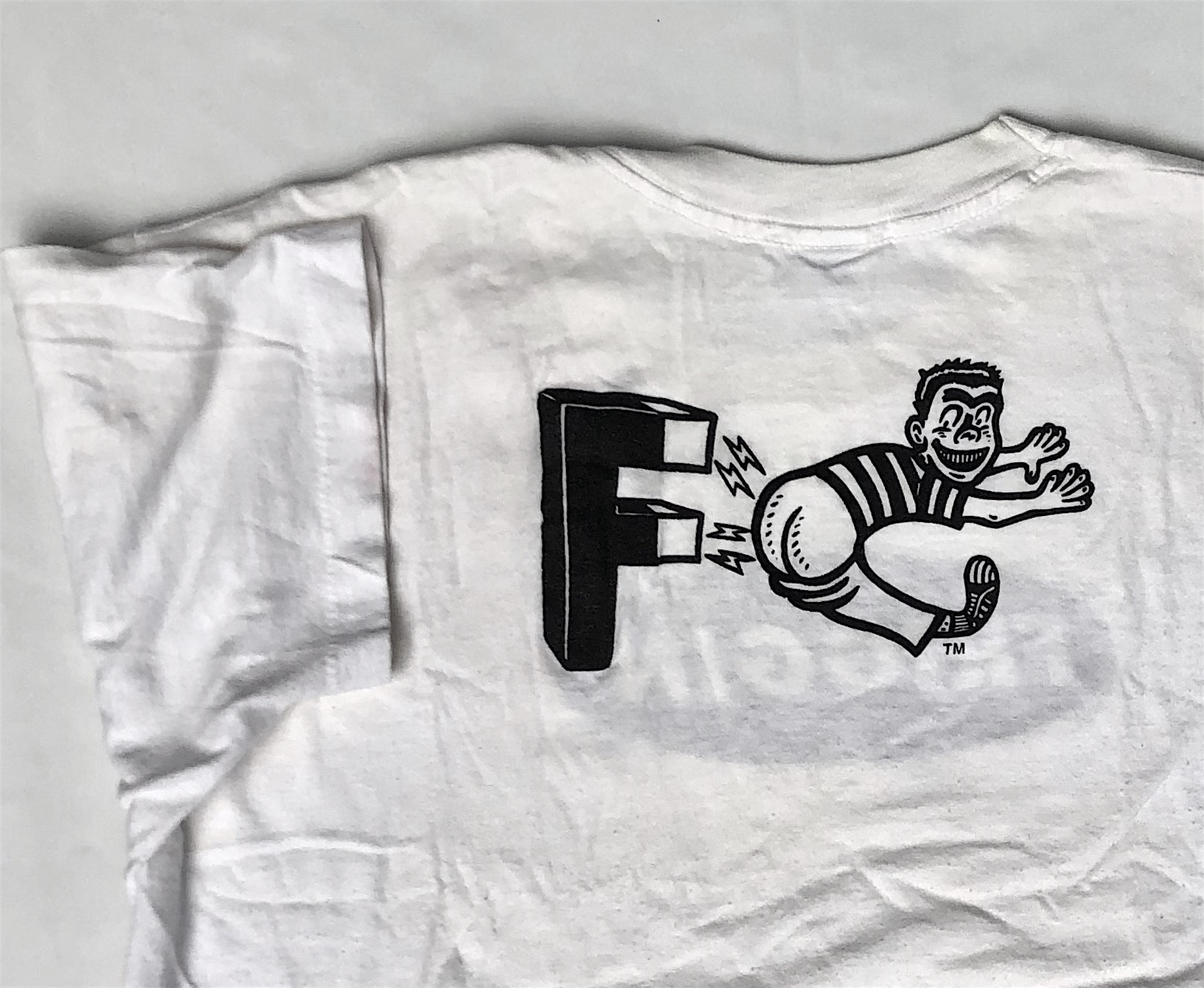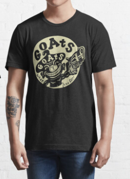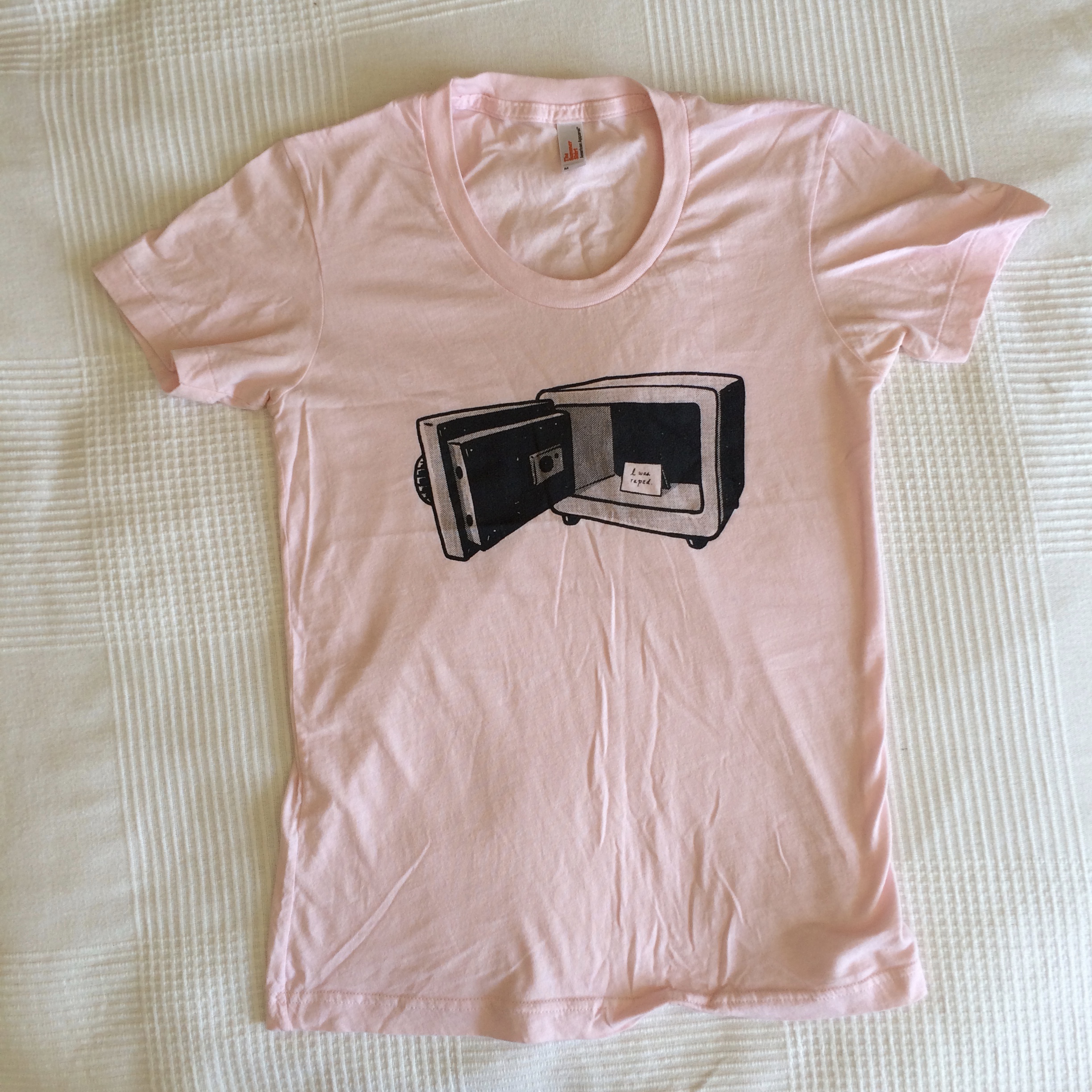 Tee for the I WAS RAPED project created by writer/activist Jennifer Baumgardner. A pale pink shirt with an illustration of a safe, and inside the safe is a note emblazoned with the words, I was raped. “A shirt that would help chip away at the cone of silence that surrounds a crime with humiliation at its core.” –New York Times • Two VINNIE’S TAMPON CASE® tees: the “Letterman” swoosh as modeled by the mini-Vinnie VTC intern Lucas, and the DJ VINNIE tee, that was fashioned into a skirt by the ever-clever Todd Oldham for a spread in Maker Magazine. • Chop Suey Bookstore logo Tee: designed for Ward Teft, the original owner of this Richmond, VA landmark. Of course I’d run into people wearing it at the Strand in NYC. • The ORIGINAL VTC tee that we offered at the grand opening of the Vinnie’s Tampon Case storefront on Eldridge Street in the Lower East Side of Manhattan a handful of years ago (sigh). • One of the official GOATS tee shirts printed by their label (Rufhouse/Columbia). Everyone would steal my GOATS shirts so I no longer have em (groupies…). Found a few online, but c’mon now peoples! $200-300 for a used tee shirt? I’ll take my chances at Salvation army, thank you very much.